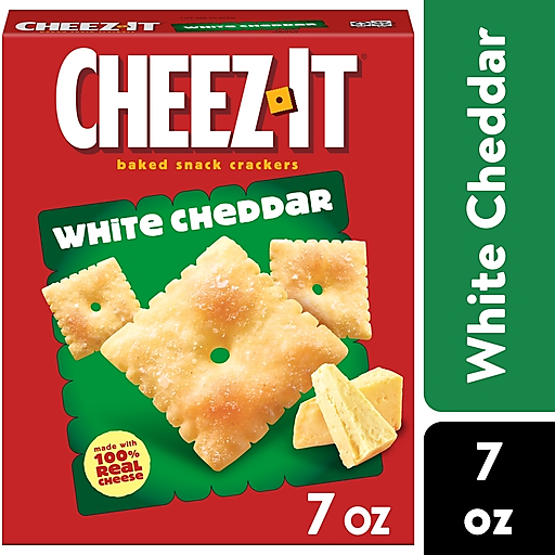 Make snack time more fun with the salty, delicious taste of Cheez-It White Cheddar Baked Snack Crackers. Cheez-It Baked Snack Crackers are made with 100% real cheese that's been carefully aged for a one-of-a-kind taste in every crunchy bite. A baked snack, Cheez-It crackers are perfect for game time, party spreads, school lunches, late-night snacking and more - the cheesy options are endless. You'll love the smooth, creamy flavor of real cheese in every perfectly toasted handful of Cheez-It White Cheddar Baked Snack Crackers.