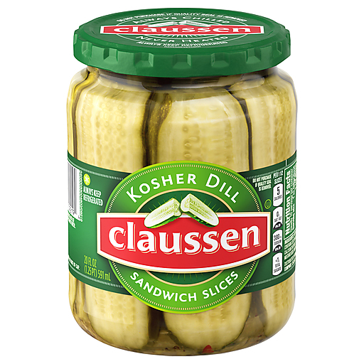 Our Claussen Sandwich Slices are crafted with fresh cucumbers picked straight from the vine and refrigerated for our classic Claussen crunch. Sliced perfectly for sandwiches, our pickle slices add a zesty garlic crunch to your sandwich. Pickled with a unique spice blend of turmeric, garlic and red pepper, our pickles are vegan, Kosher Certified and a fat free food. Claussen pickles are always refrigerated for superior crunch and freshness. Keep our 20-ounce resealable jar of pickle slices refrigerated. Whether you enjoy pickle chips or spears, slices or wholes, you can't beat Claussen's mouthwatering crunch.