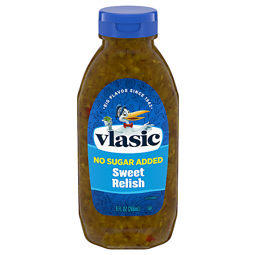 Vlasic Squeezable No Sugar Added Sweet Relish is deliciously sweet pickle relish. Cucumbers, salt and vinegar, along with the Vlasic secret seasoning recipe and other ingredients, make this Vlasic pickle relish one-of-a-kind. This no sugar added sweet pickle relish has 0 calories per serving and adds flavor to any sandwich. Vlasic relish is squeezable and spreadable, conveniently ready to top your sandwich. Top your hot dogs and hamburgers with sweet pickle relish to give them delicious flavor, and keep it on hand for picnics and grilling. Stir sweet pickle relish into dressings, or add it to salad recipes. The sweet relish is packed in a 9 ounce resealable bottle to keep it fresh and delicious. From classic dill pickle spears to barbecue ready relish, Vlasic offers several flavors and sizes of pickles, peppers and relish.